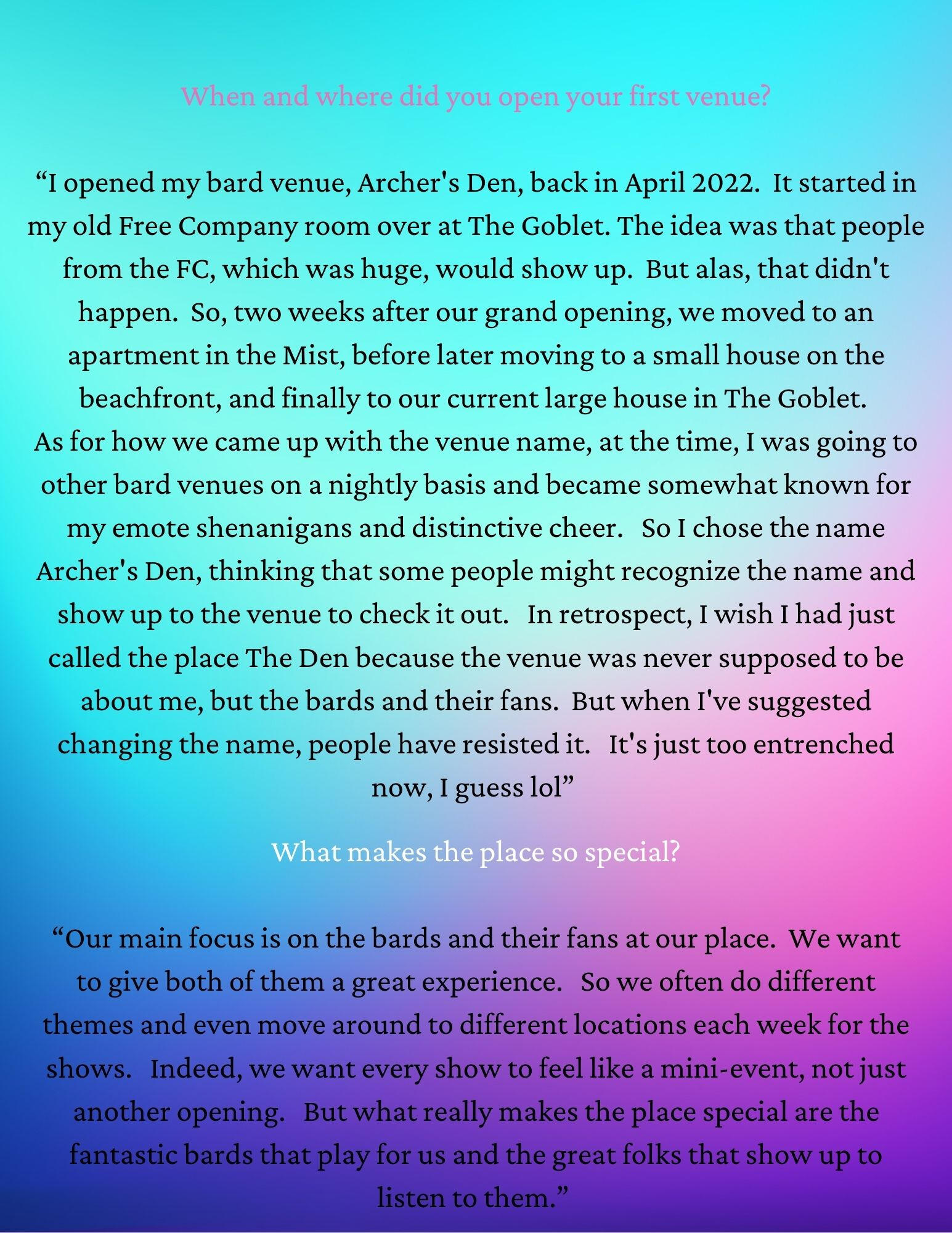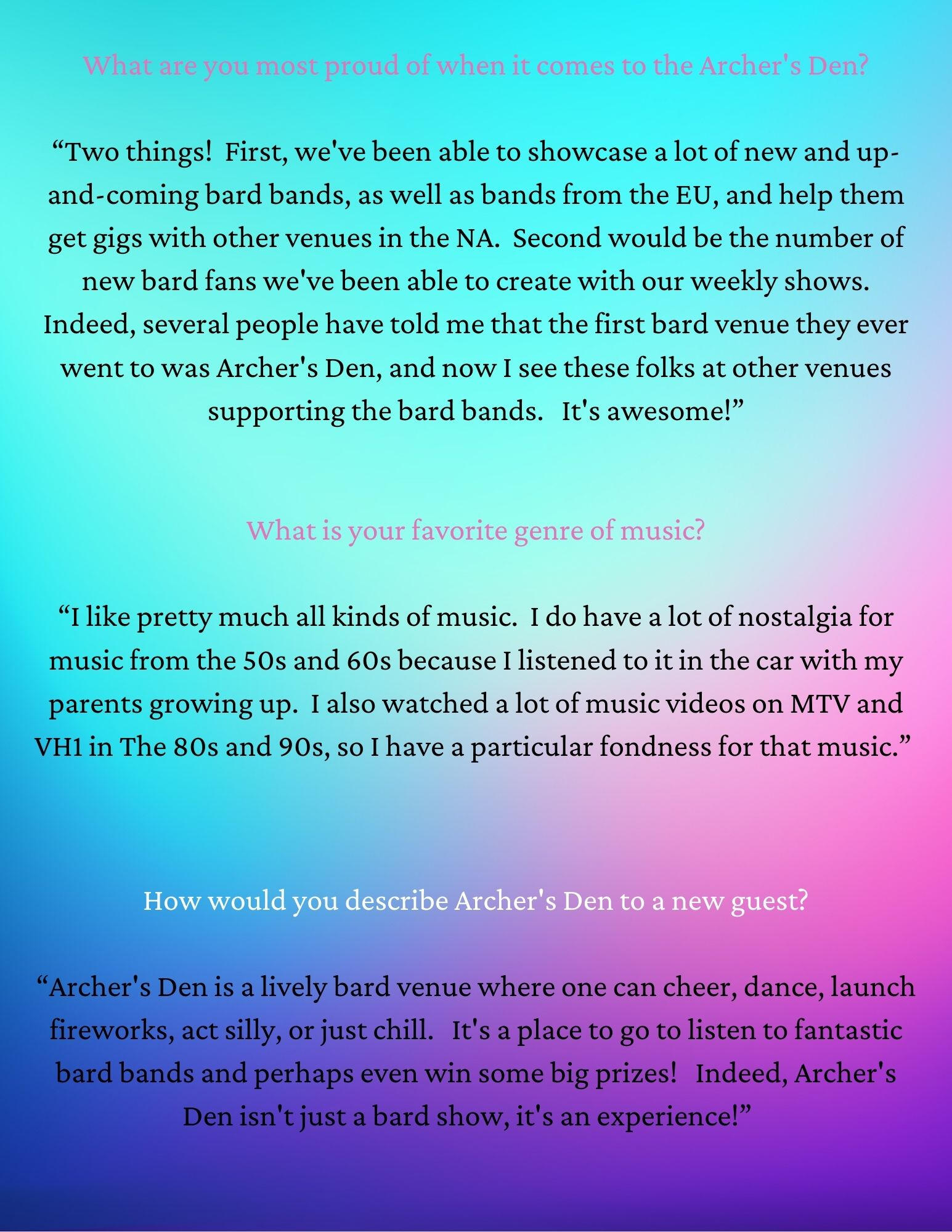 The Interview - with Cate Archer - owner of Archer's Den