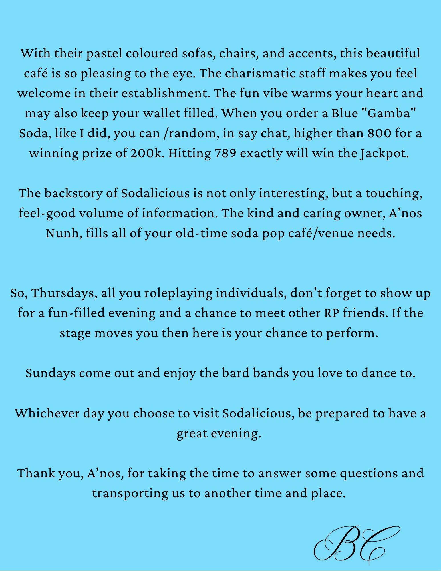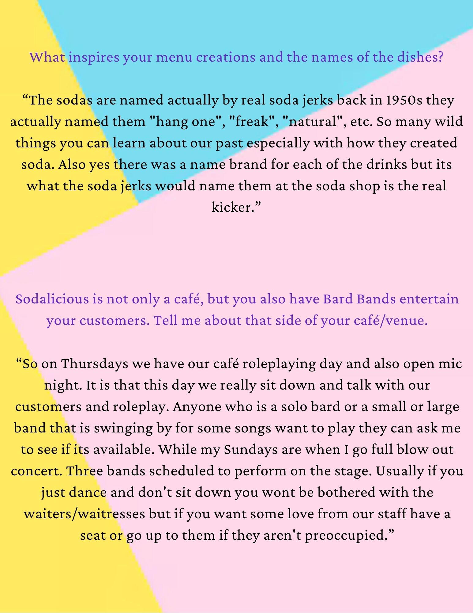 The Interview - with A'nos Nunh - the owner of the café /venue, Sodalicious