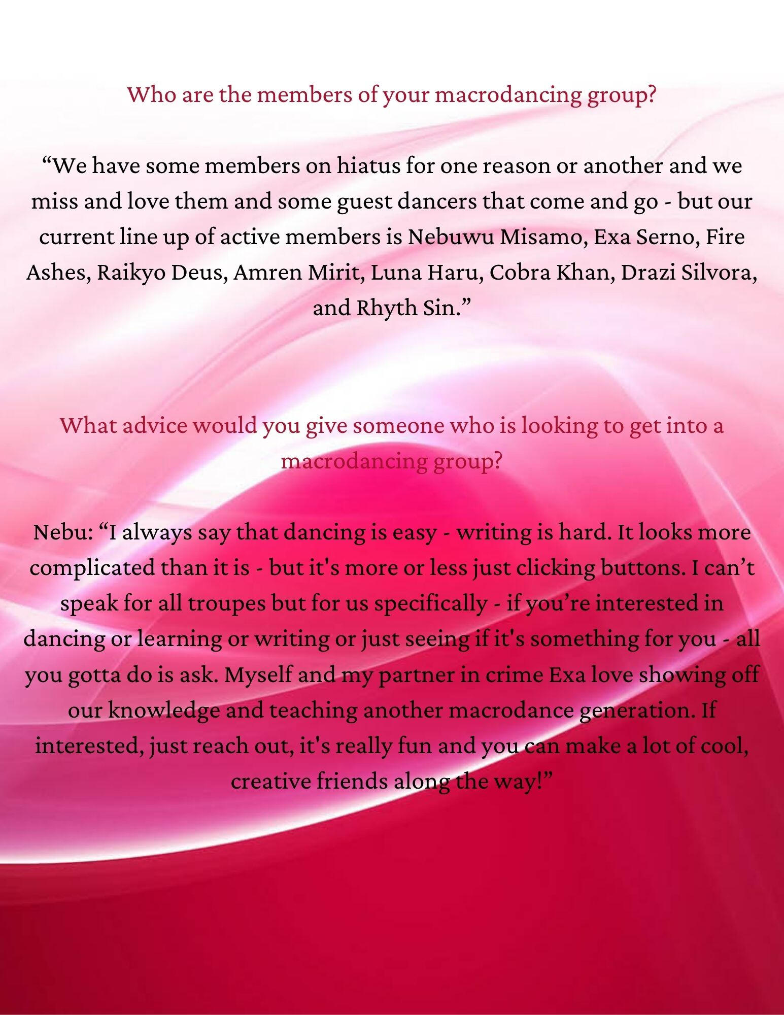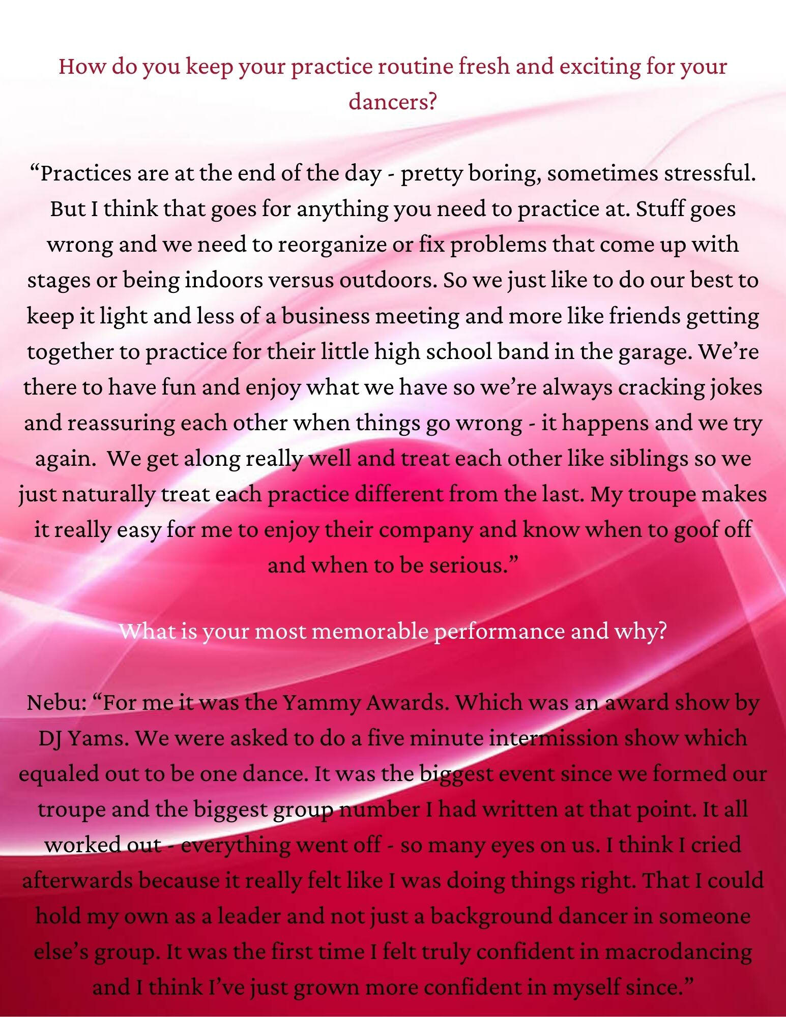 The Interview - with Nebuwu Misamo & Exa Serno - owners/directors/dance co-ordinators of the dance troupe, Nyah.