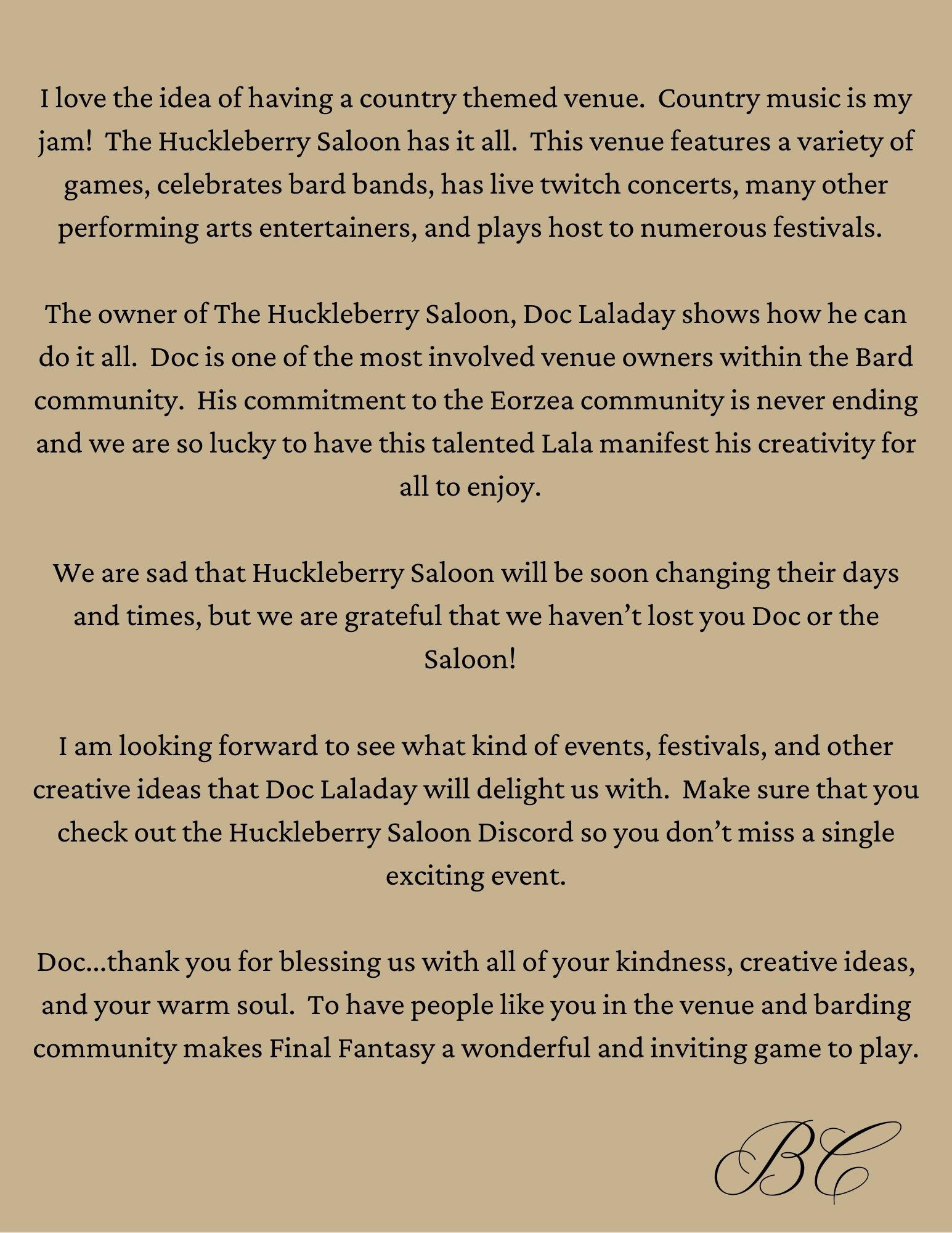 The Interview - with Doc Laladay - owner of Huckleberry Saloon